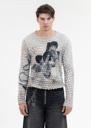 Model is 6’ (183 cm), 125 pounds (56 kg), usually wears M in tops. A size 30 in denim and 46 in trousers. Size 10 in shoes.