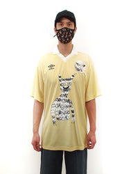 Relaxed fit cropped T-shirt in ivory. Features dropped shoulders, and a rib-knit mock neck collar. Multicoloured graphic print across the front face. Tonal logo patch along the waist. Tonal stitching throughout.