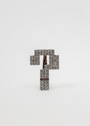Silver-tone open-face signet ring with rhinestone trim detailing.