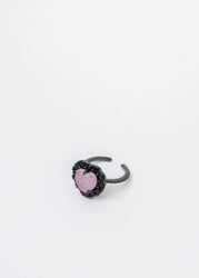 Sculpted earring stud with crystal detailing. Post-stud fastening. Version A is approximately 29mm by 25mm; version B is approximately 32mm by 23mm.