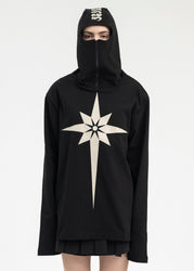 Yellow, black, and white colour-blocked crew neck sweater. Features a panelled construction with dropped shoulders. Black rib-knit collar with text embroidery across the throat. Finished with rib-knit cuffs and hem. Black logo patch along the waist.